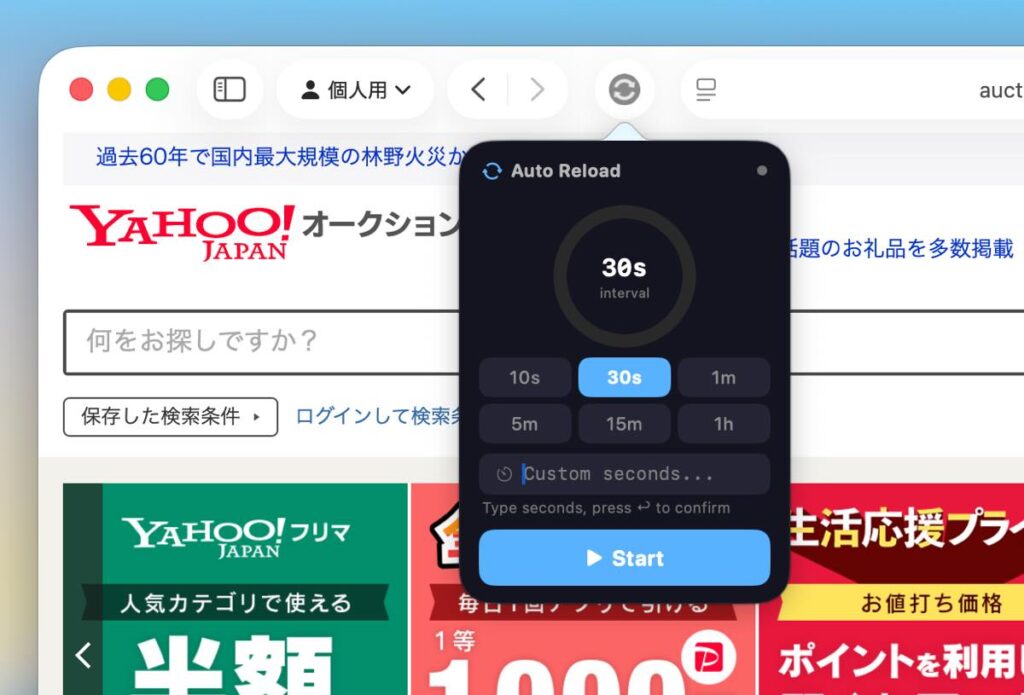 指定した時間(秒)ごとにタブを自動的にリロード(再読込)するSafari機能拡張。