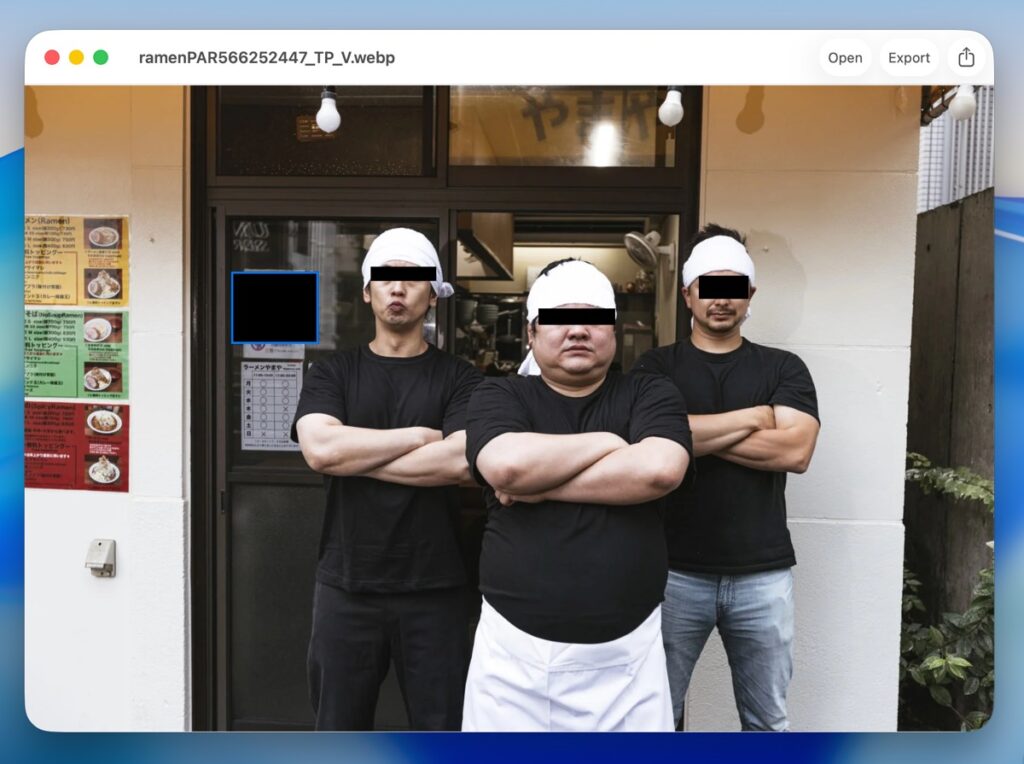 使い方は、写真をウインドウにドラッグ&ドロップし、隠したい部分をドラッグするだけ。すると黒で四角く塗り潰されます。