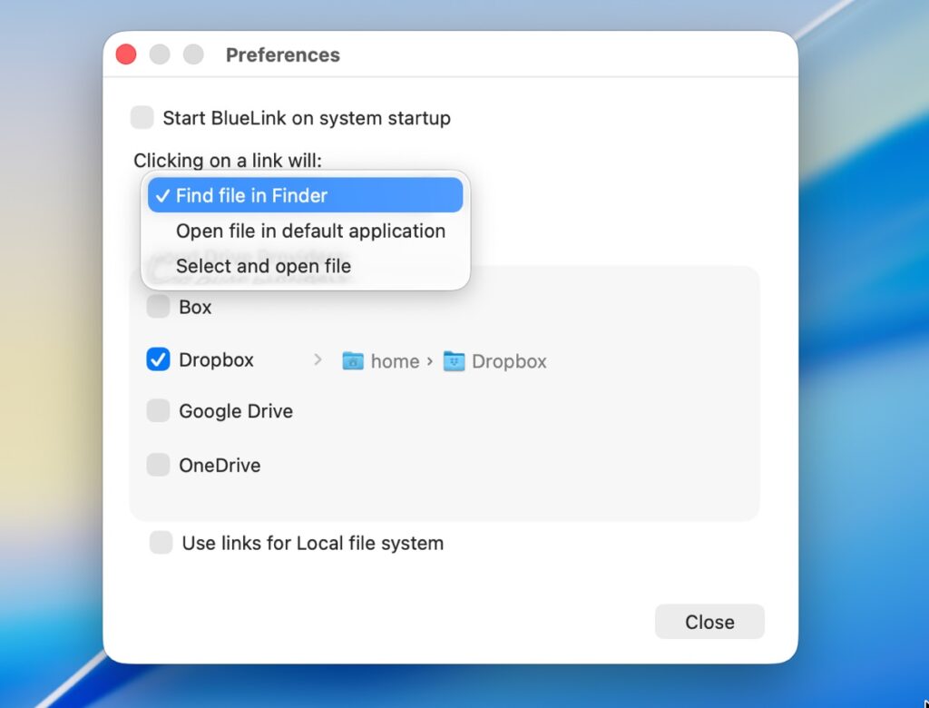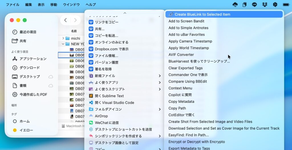 「BlueLink Share」は、FinderからDropbox、OneDrive、Box、Google Driveなどのクラウドストレージを含む、Mac上のあらゆるファイルへの共有リンクを、Finderのサービスメニューから作成するアプリ。
