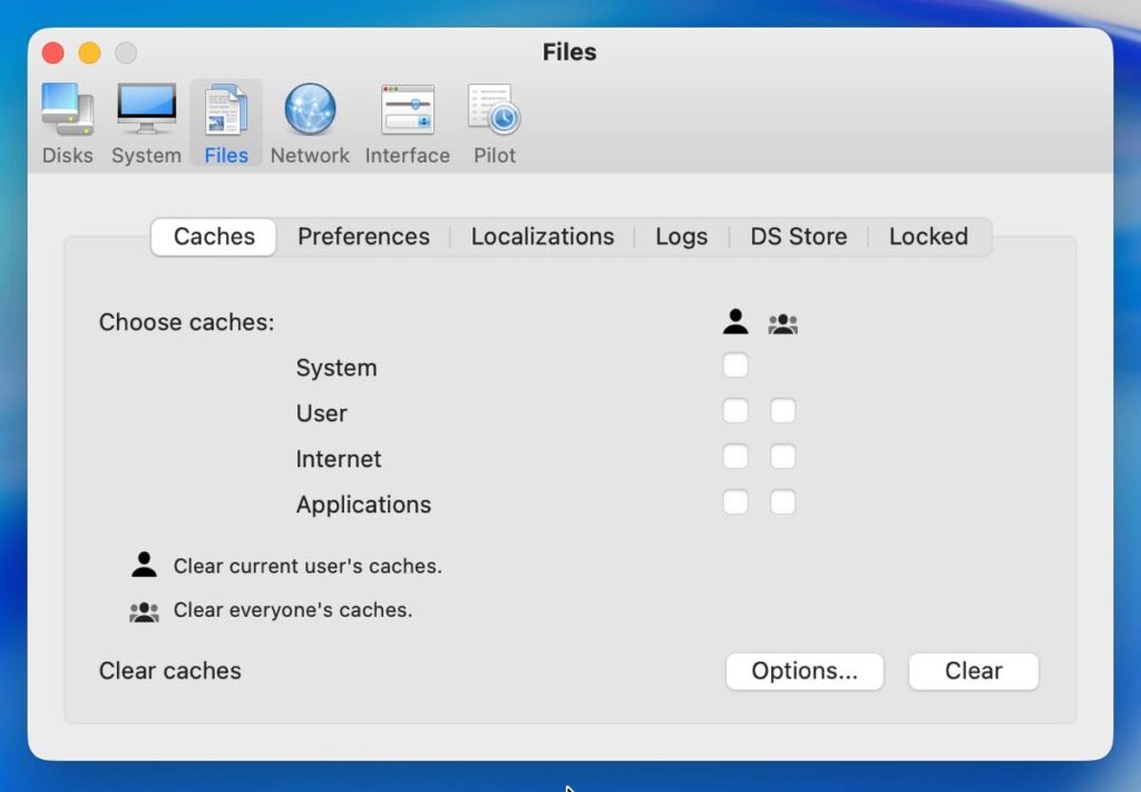 Files:システムキャッシュをクリア、ユーザーキャッシュをクリア、フォントキャッシュをクリア、仮想メモリスワップファイルをクリア、一時ファイルをクリア、インターネットキャッシュをクリア、DNSキャッシュをクリア、メールのダウンロードをクリア、Cookie、ダウンロードリスト、フォームの値、履歴ファイルをクリア、Adobe Flash PlayerのキャッシュとCookieをクリア、アプリケーションのキャッシュをクリア、破損した設定ファイルを検索、不要な言語リソースを削除、ログファイルの消去と管理(表示、印刷、保存)、 不可視のDS Storeファイルを削除、 ロックまたはアクセスできないアイテムを削除するなど。