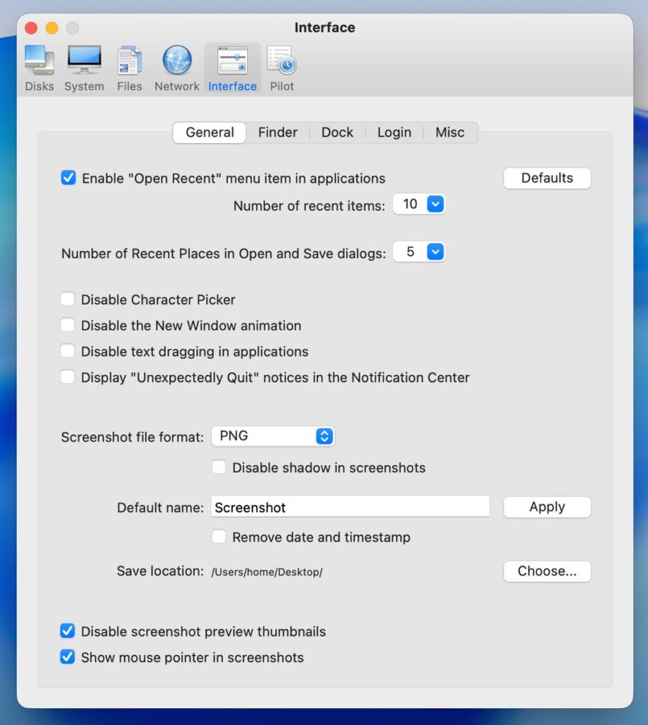Interface:Finder、Dock、ログインウィンドウ、その他のシステムサービスの外観と機能をカスタマイズ