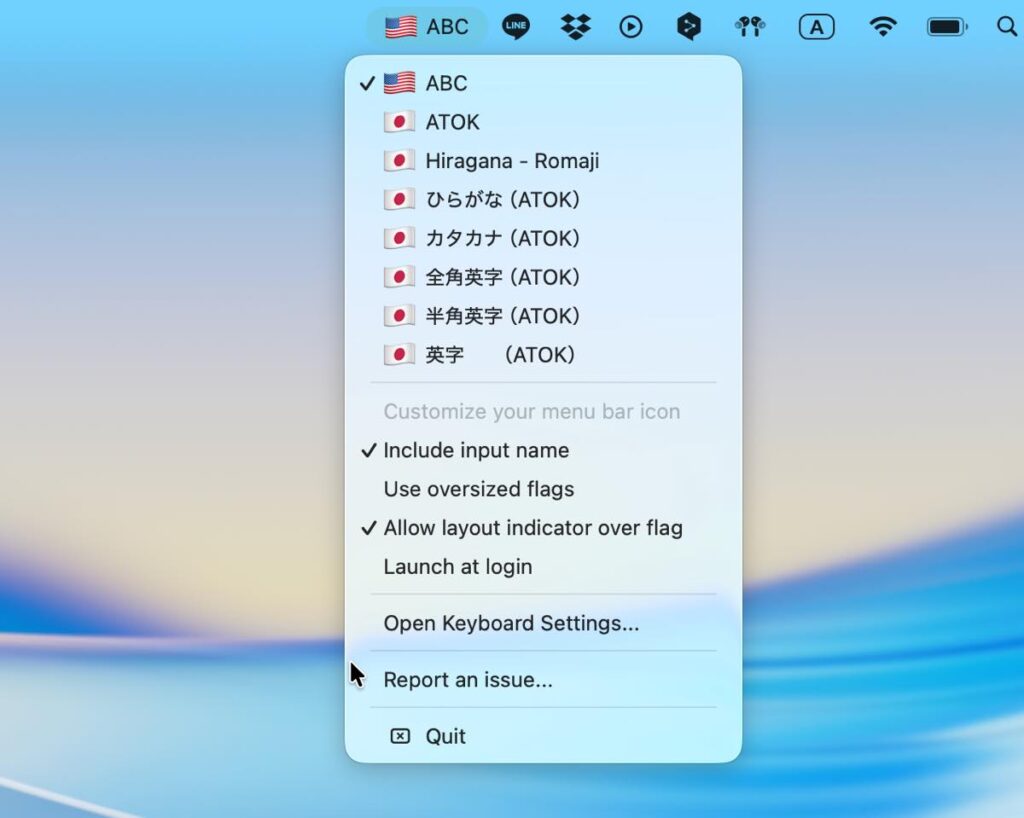 入力メニューのアイコンを「国旗」にして視認性を高める