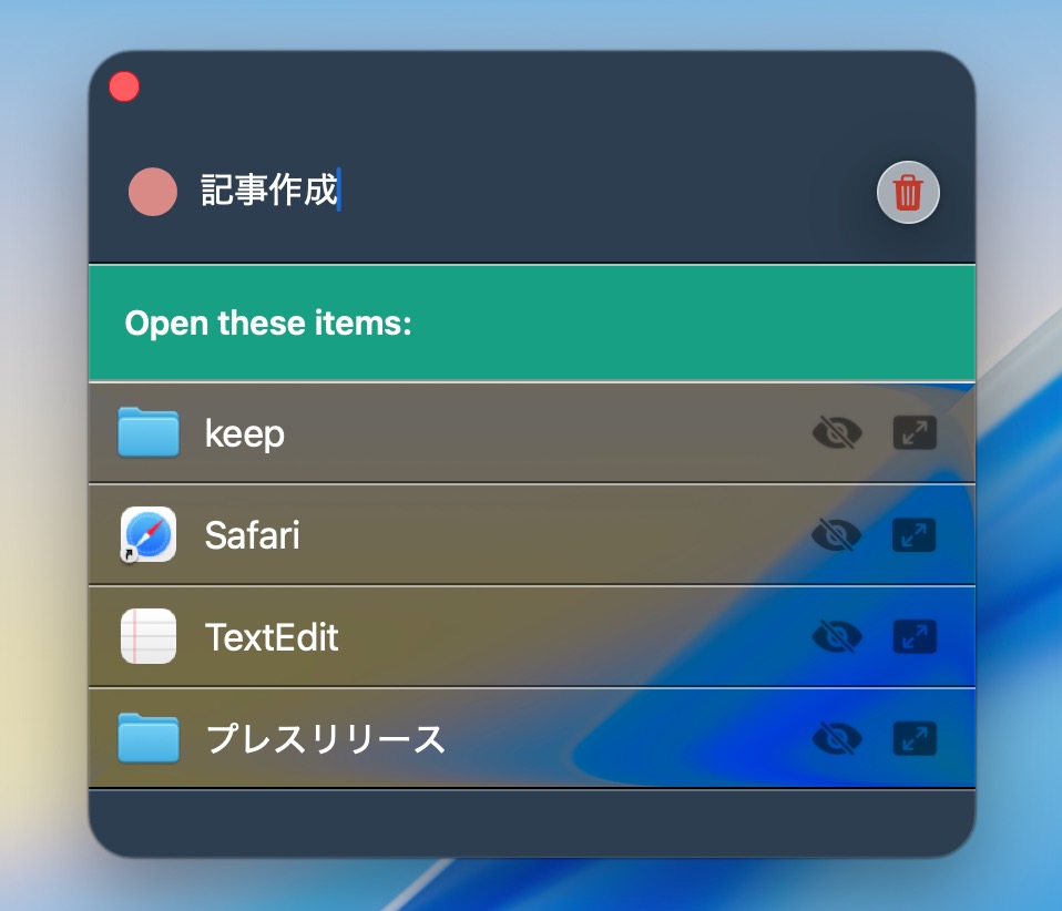 特定のプロファイルをiCloud経由で他のMacと同期する機能もあります。ドラッグ操作で登録でき、1〜9キーやショートカットで瞬時に呼び出せます。