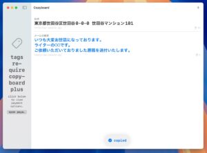 よく使うメール定型文やよく使うフレーズを、必要なときにワンクリックで瞬時にコピペできます。