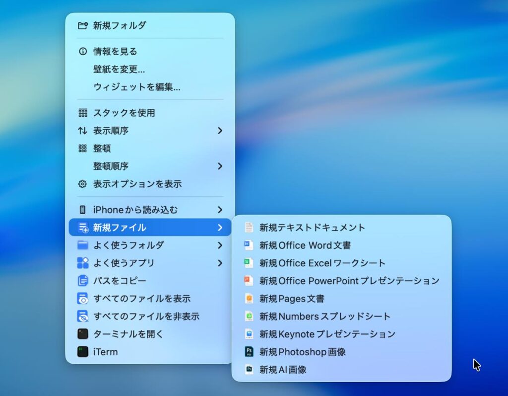 WordやExcel、Pagesなどをはじめとするさまざまな形式の新規ファイルを作成できます。