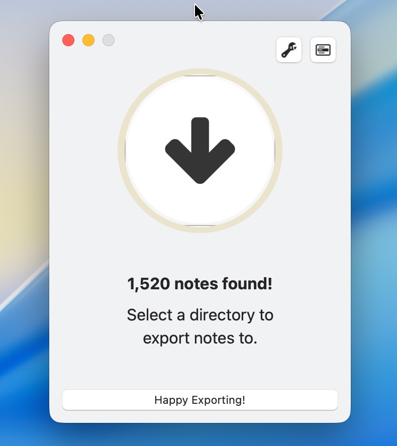 macOS標準の「メモ」に書き留めたすべての内容を、標準テキスト形式、またはHTML形式のファイルとして一気に書き出せるアプリ。
