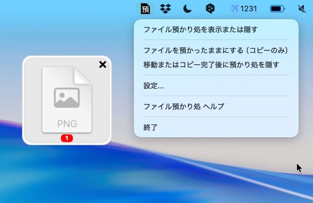 ファイルの預かり処からファイルをドラッグした場合は「移動」になり、[option]キーを押しながらファイルをドラッグした場合は「コピー」となります。