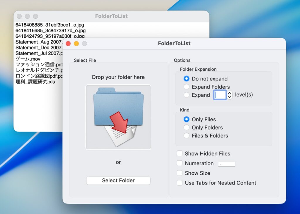 FolderToList 1.7.4 - ドラッグ&ドロップしたフォルダ内の「項目リスト」を自動作成