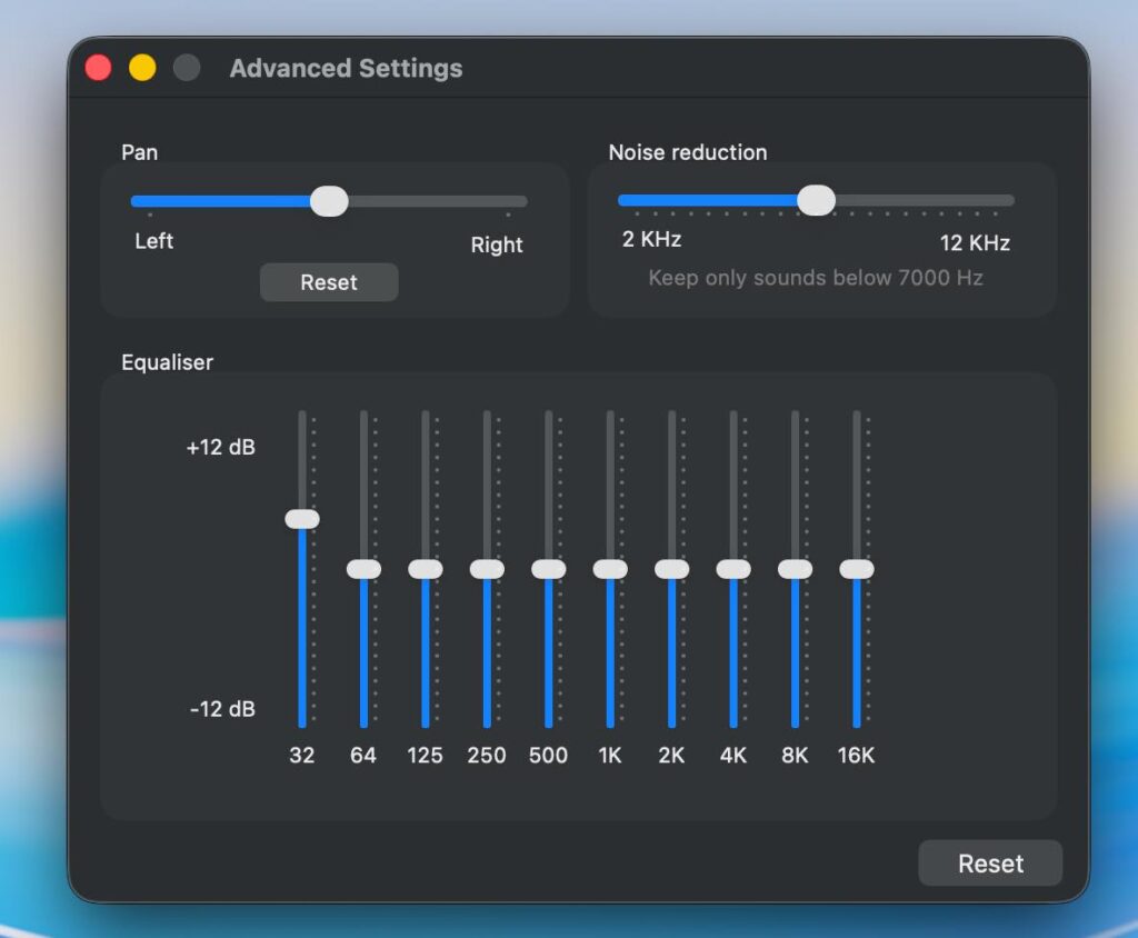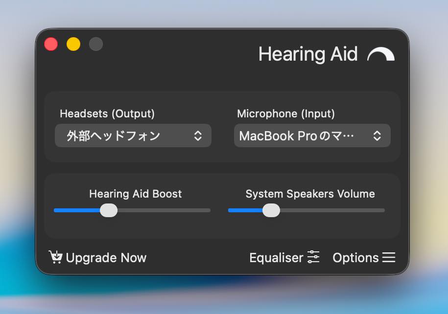 Macのサウンドをヘッドホンで聞いているとき、マイクが拾った周囲の音を増幅し聞こえやすくしてくれるアプリです。