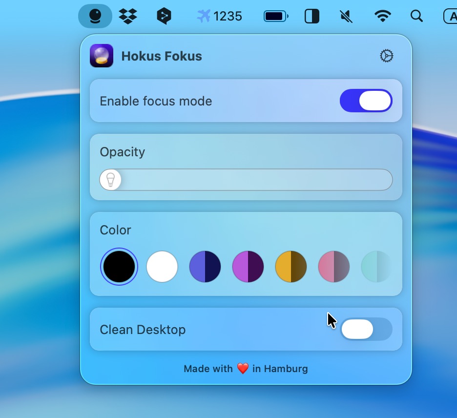 作業中に最前面のウィンドウ以外を暗くすることで、デスクトップ上の壁紙やアイコン、その他のアプリケーションウィンドウといった視覚的な雑音を効果的に軽減し、作業への集中力を高めることができる便利なアプリ。