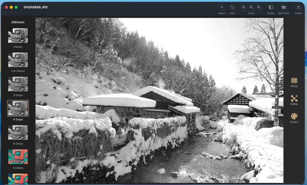 デジカメ写真をモノクロ 2 階調モードの画像に変換
