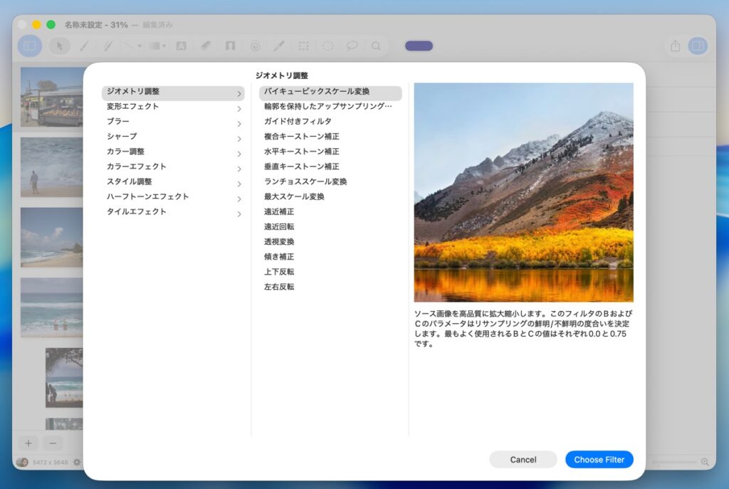 非破壊レイヤー・フィルタ処理に基づいたパワフルな画像編集ツール