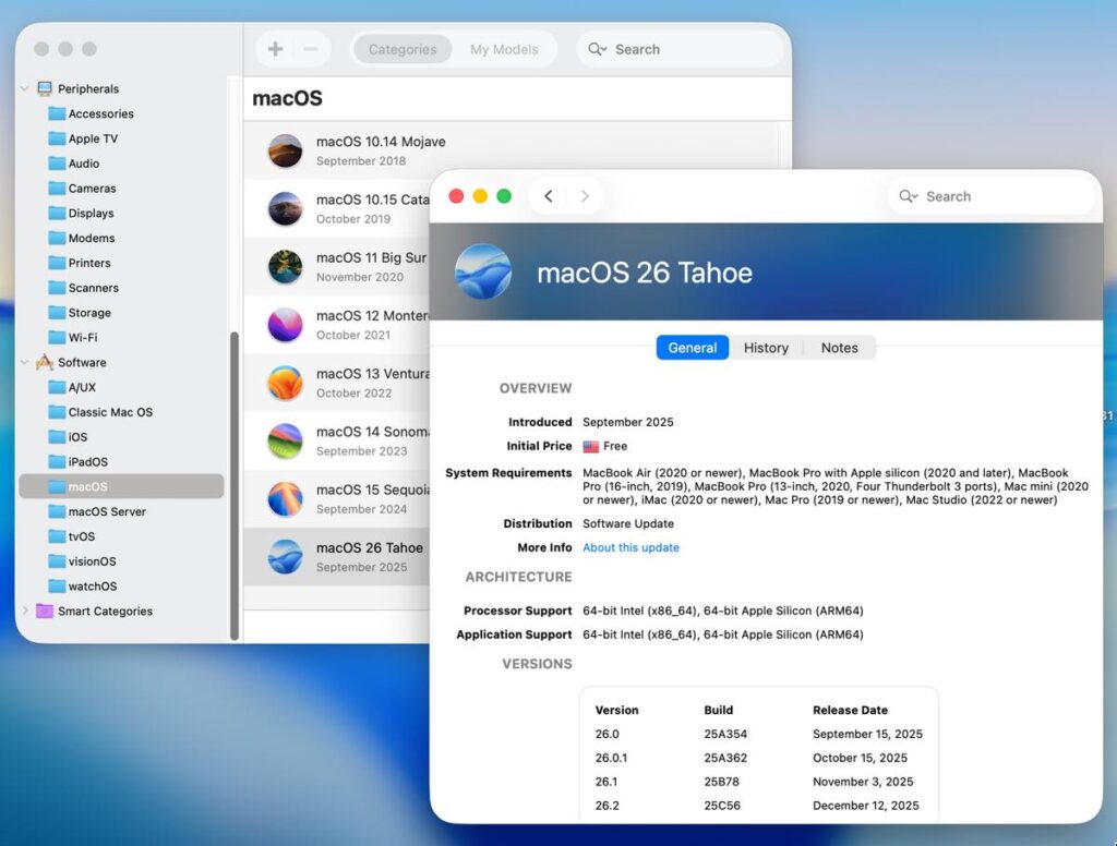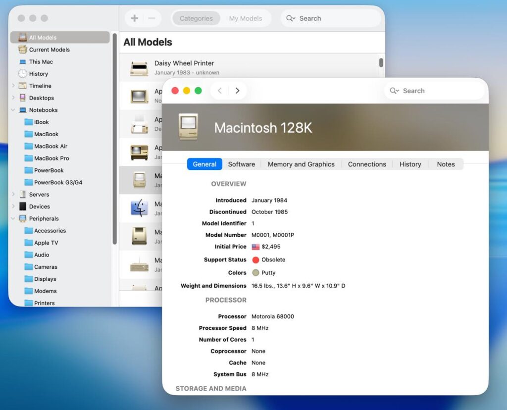 歴代のMac本体やディスプレイ、システム、AirMac、iPod、iPhone、iPad、AppleTV、Apple Watch など、さまざまなアップル製品の資料を集めたデータベース。