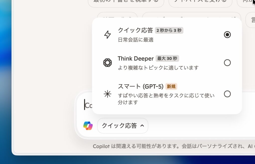 • GPT-5の登場 ― 当社最先端のAIがスマートモードで進化。より直感的な会話と深い推論を実現。