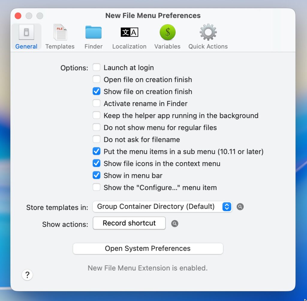 標準テキスト、リッチテキスト、MSOffice書類(Word、Excel、PowerPoint)、Pages、Numbers、Keynote、OpenOffice / LibreOffice書類(テキスト、スプレッドシート、プレゼンテーション、図面)、スクリプト(シェル、Python、Perl、Rubyなど)などの形式が用意され、ほかの形式を自分で追加することも可能です。