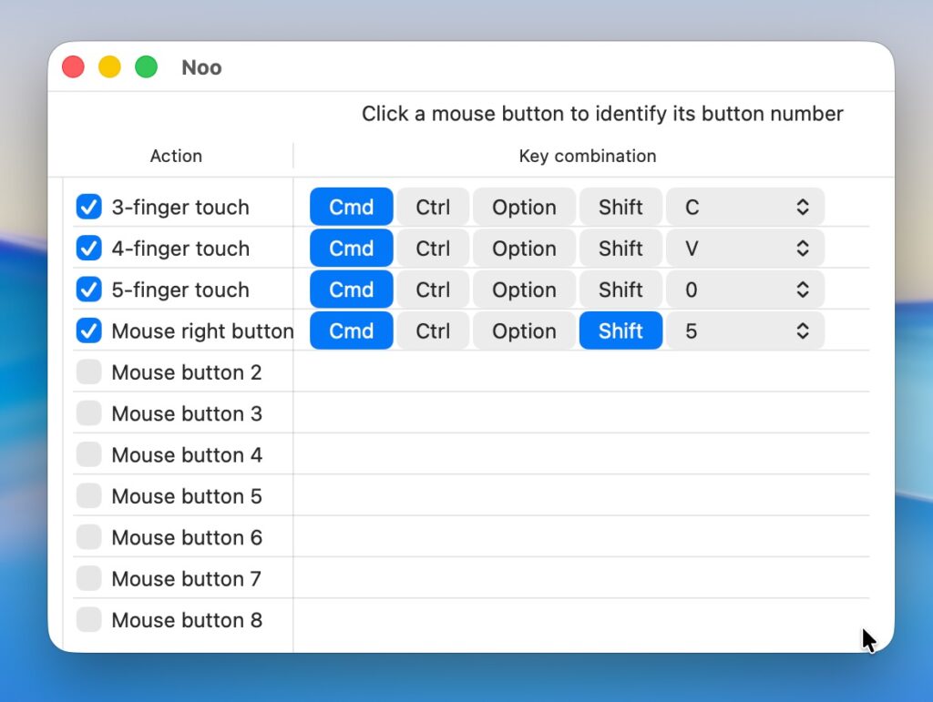 マウスボタンやトラックパッドのジェスチャーにキー操作を割り当てる