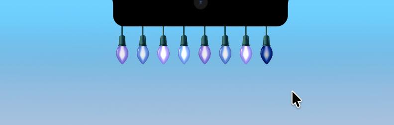 ノッチ部分にカーソルが通り過ぎると、ノッチから電球がぶら下がったり、ピンク色に輝いたり、光の粒子を散りばめるなど、5種類のエフェクトが楽しめます。
