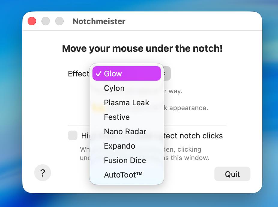 MacBook Pro/Airの画面上部にある「ノッチ」(切り欠き)に遊びゴコロを持たせて楽しめるアプリ。