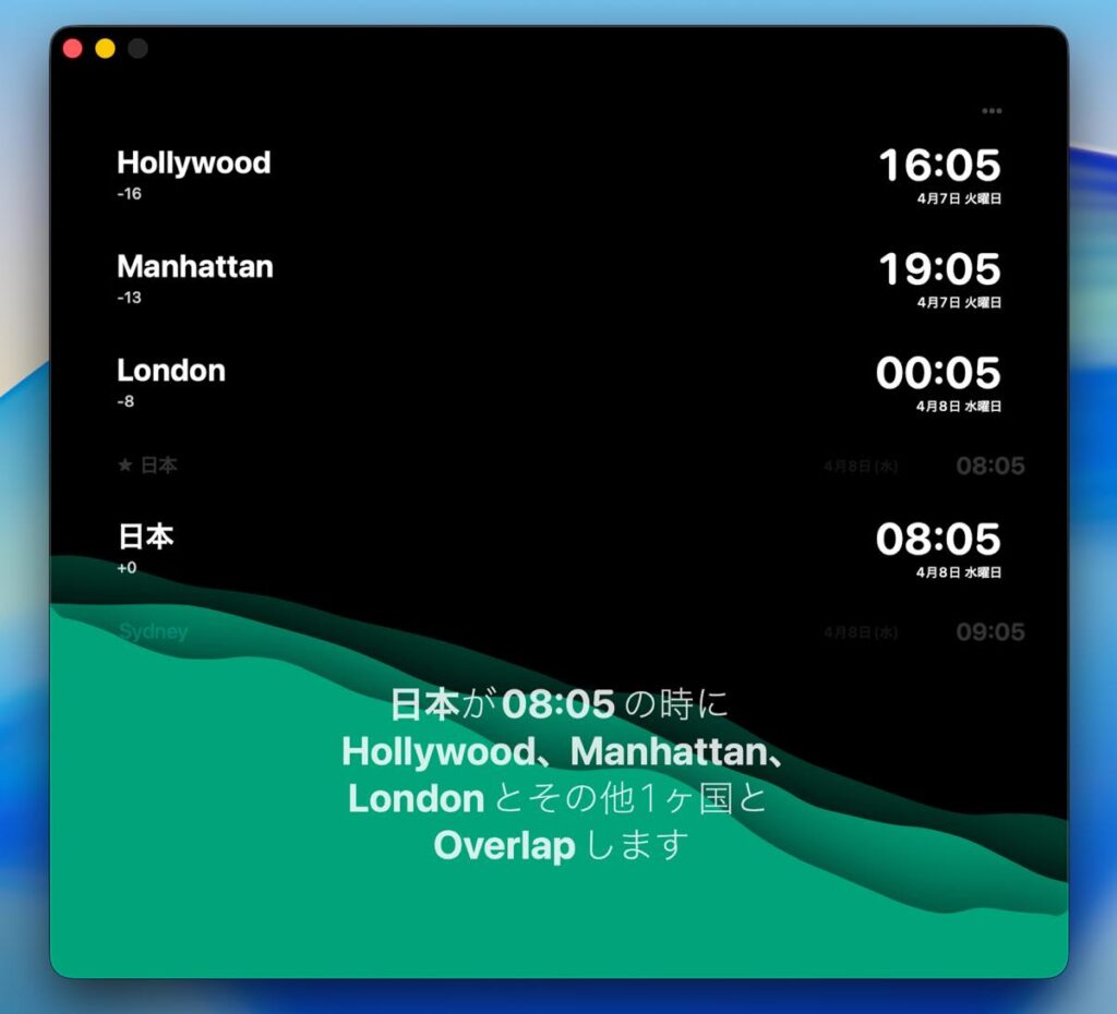 海外の支社や海外在住の複数の人とオンライン会議を行うときは、参加者ごとの現地時間を考慮してスタート時間を決める必要がありますが、このアプリを使えば参加者ごとの「対応時間」を設定することでみんなが都合の良い時間帯を調べることができ、何時からの開催がベストかを教えてくれるアプリ。