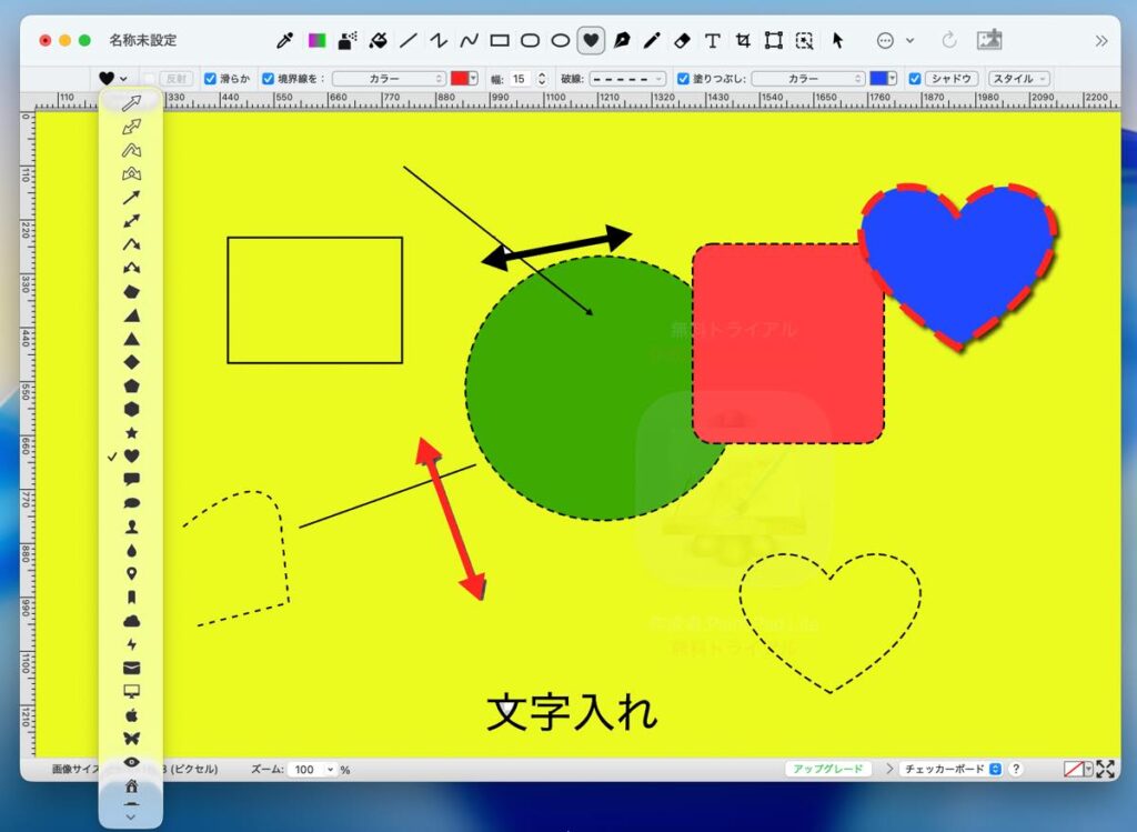 さまざまなペンツールや塗りつぶしツールを利用して図形を描画できます。