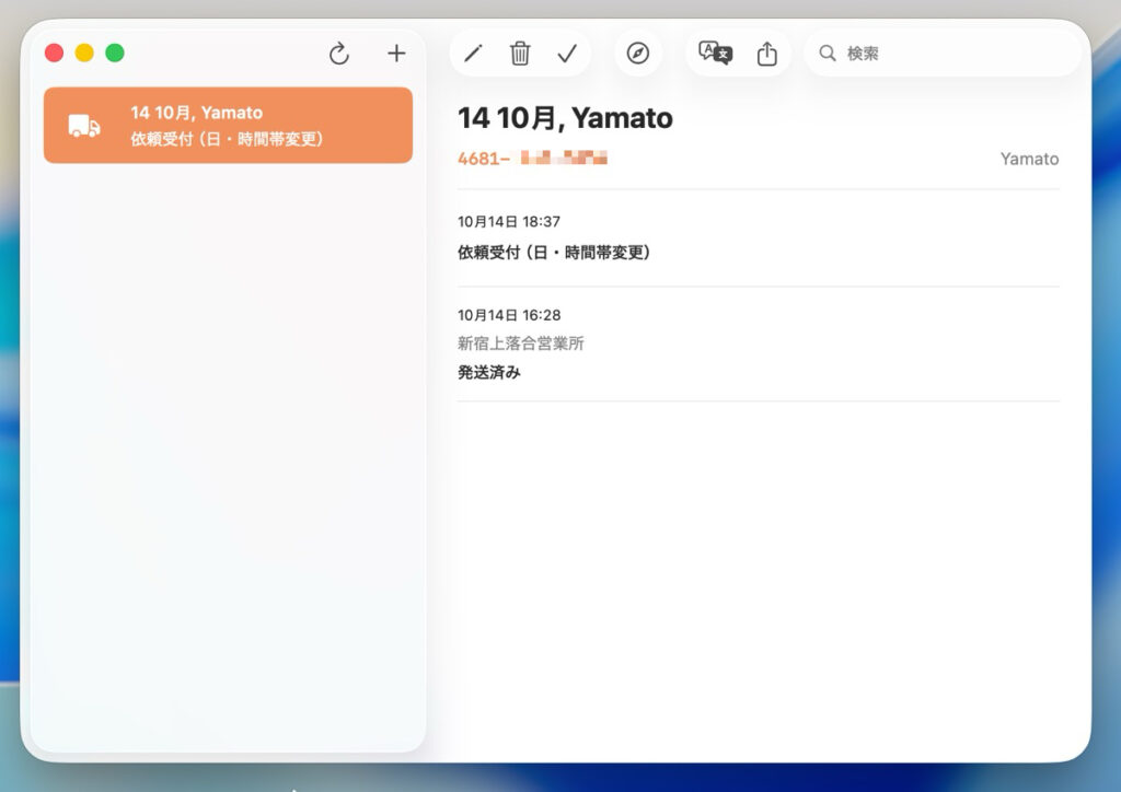 配達状況が変わると通知バナーで知らせたり、荷物の追跡番号をSpotlightで検索したりできます。