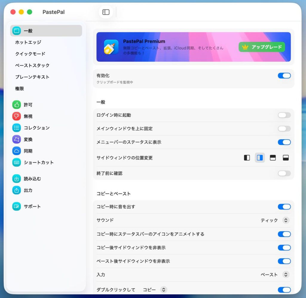 アプリ内課金でProにアップグレードすると、コピー&ペーストを無限に行えるほか、iCloud同期でiPhoneやiPadとの間でコピー内容を共有できます。また、どのアプリ・単語がコピー記録の対象・対象外になるかなど細かくルール設定が可能になったり、Siriとショートカットに対応します。