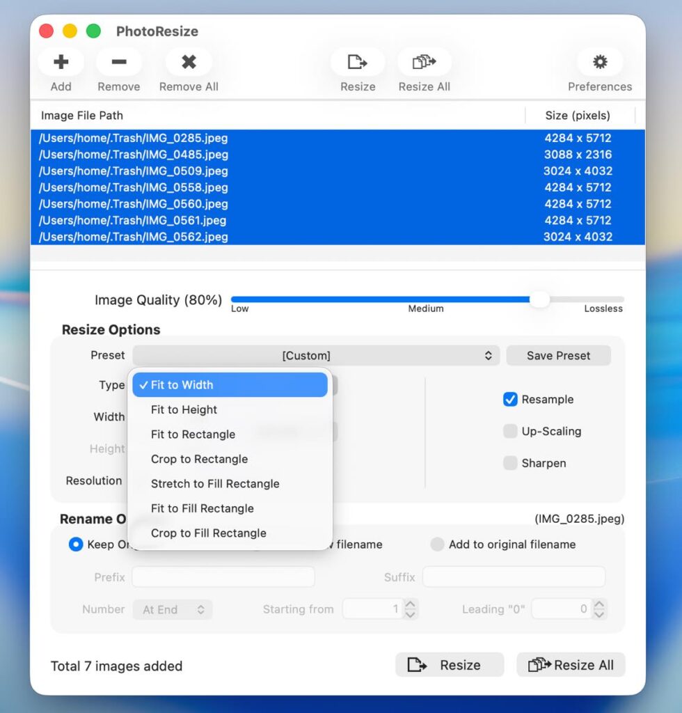 あとは「Resize」ボタンをクリックすると選択している画像が、「All Resize」ボタンをクリックすると登録されているすべての画像がサイズ変更(リサイズ)/名称変更(リネーム)されます。
