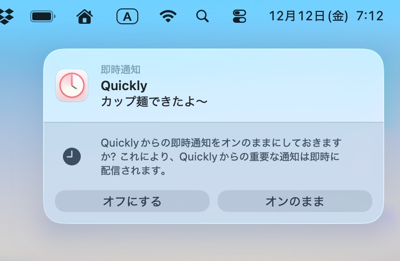 予定時間になると、通知センターのバナーで知らせてくれます。