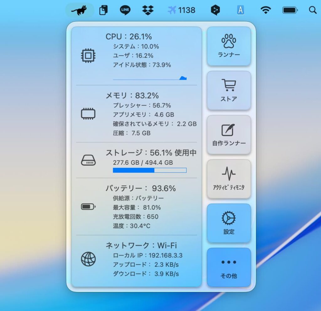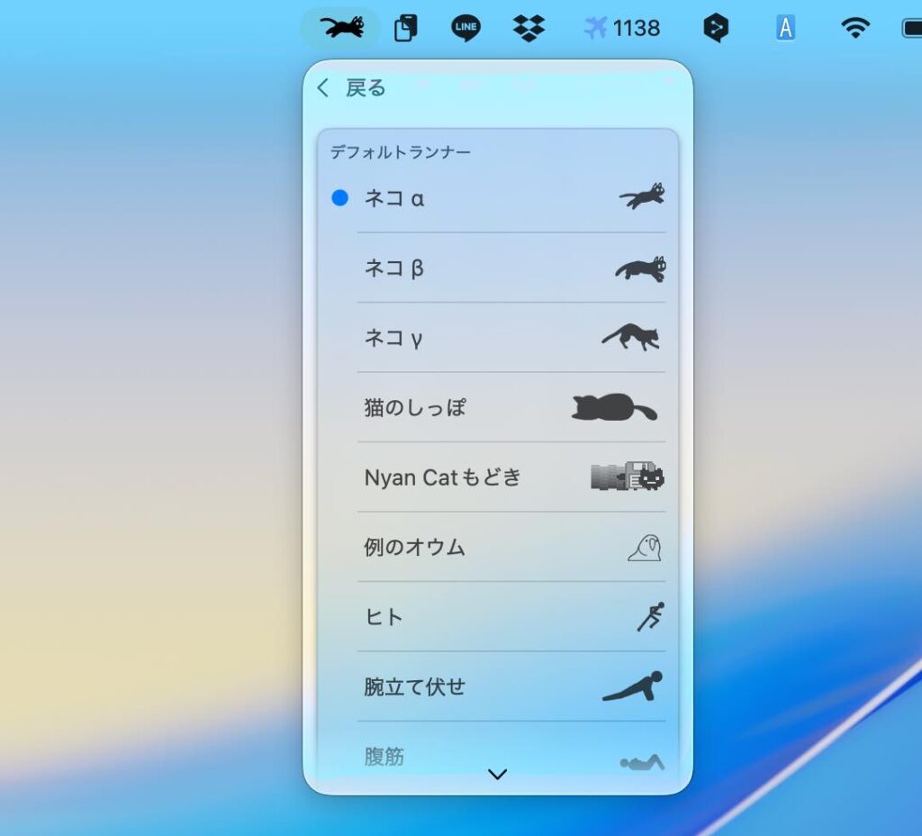 メニューバーの「ネコ」の走りっぷりでCPU負荷を把握