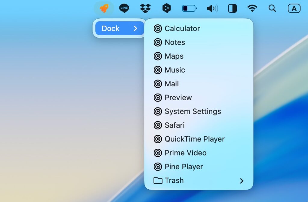 画面端に表示される「別のDock」から、登録したソフトやファイル、フォルダ、URLなどに素早くアクセスできます。