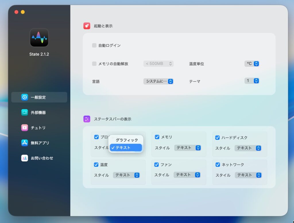システムに関する情報をメニューバーからモニタリングできるアプリ。