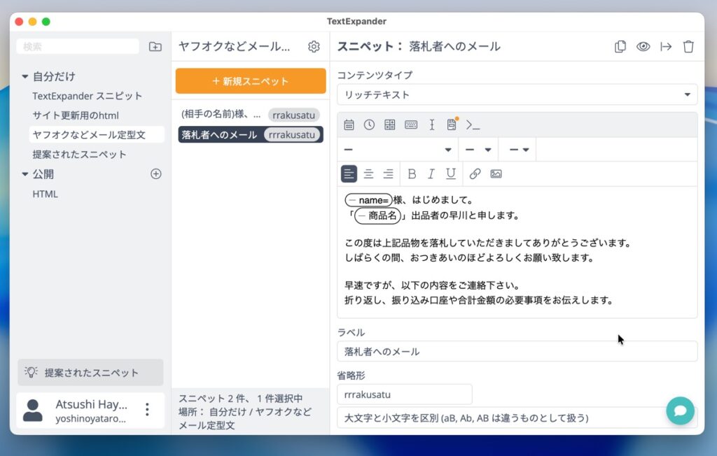 時間や日付、画像、定型文、HTMLなどを事前登録して省略入力するだけで挿入してくれる入力ヘルパー。