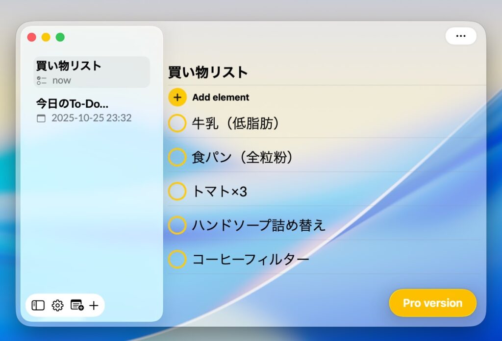 透明なメモを常にデスクトップの最前面に表示できるため、他のウインドウに隠れてしまうことはありません。この機能はオフにすることも可能です。