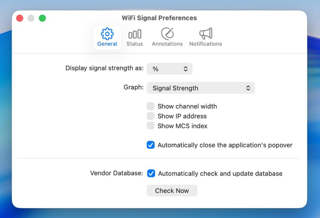 接続している WiFi のステータスをメニューバーから素早くチェックできるアプリ。