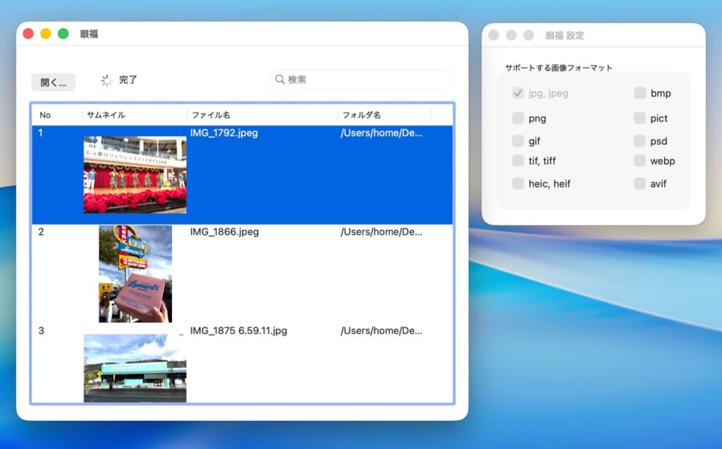 jpeg、png、tiff、bmp、pict、psdといった画像形式でフィルタリングすることも可能です。